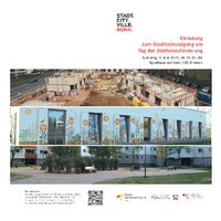 Anlässlich des "Tages der Städtebauförderung" fand in Bonn Neu-Tannenbusch ein Rundgang statt, auf dem das neue Spielhaus im KBE-Dreieck besichtigt wurde. Hier wurde ein Film über die künstlerische Fassadengestaltung während der Osterferien mit Kindern aus dem Statteil präsentiert. Im Innenhof Riesengebirgsstraße / Chemnitzer Weg veranstaltete der Vermieter Deutsche Annington auf der neuen Spielfläche in frühsommerliches Fest. Der Rundgang endete am Neubau des Studentenwohnheims TABU I, wo die Baustelle besichtigt werden konnte.
