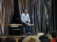 Das Quartiers-management Neu-Tannenbusch und die Freiherr-vom-Stein-Realschule hatten mit der Lesung einen Austausch zwischen den Schülern und dem Autor ermöglicht. Der Sohn türkischer Einwanderer ist ein Vorbild, der seine Berufung in der Künstlerszene gefunden hat, worüber er auch berichtet hat.