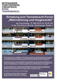 Das „Tannenbusch-Forum“ ist eine Veranstaltungsreihe für alle Tannenbuscher, die Näheres zu aktuellen Entwicklungen im Stadtteil erfahren, darüber mit Fachleuten sowie anderen Bewohner und Bewohnerinnen diskutieren und ihre eigenen Ideen einbringen möchten.