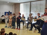 Schon im Vorfeld hatten sich die Kinder der Offenen Ganztagsschule (OGS) spielerisch mit Blasinstrumenten beschäftigt. So wurde etwa die Frage gestellt: Was ist eigentlich ein Kornett? – ein Blechblasinstrument, das zu den Horninstrumenten zählt und in einer AG genauer erforscht wurde. Dieser praktische Einstieg bereitete den Boden für das Konzert, bei dem die Kinder die Instrumente anschließend live erleben konnten.
