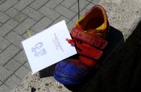 Den Weg zum Offenen Bürgerhaus wiesen kleine, bunt bemalte Kinderschuhe sowie bunte Fußabdrücke im Stadtteil – hier waren die Kindertagesstätten einige Tage im Voraus fleißig am Werk.