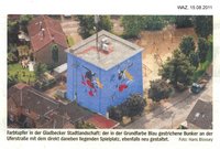In ihrer Ausgabe vom 15. August präsentiert die WAZ einen Stadtspaziergang durch Brauck und Zweckel. Dabei widmet sie sich auch dem Hochbunker in der Uferstraße, der in neuem Gewand erstrahlt. Das Luftbild zeigt den freundlichen "Farbtupfer", der seit Kurzem seine Umgebung in neuem Glanz erscheinen lässt.