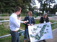 Vormittags fand ein Rundgang am Hahnenbach statt, auf dem dem Fachpublikum die sieben einzelnen Stationen, aber auch der Projektrahmen, die Planungs- und Umsetzungsschritte vorgestellt wurden. Ein großes Augenmerk wurde auf die Besonderheit des Projektes gelegt, und zwar die Kooperation der vielen Projektbeteiligten, angefangen bei der Emscher-genossenschaft, die für den ökologischen Umbau verantwortlich war, die Stadt Gladbeck, die bspw. gleichzeitig die Horster Straße, die den Bachlauf kreuzt, umgebaut hat, und das Planungsbüro, das mit der Ausführungsplanung des Erlebnispfades betraut war, sowie das Stadtteilmanagement, das die zahlreichen Beteiligungsschritte im Stadtteil begleitet hat – um nur die Hauptbeteiligten zu nennen.