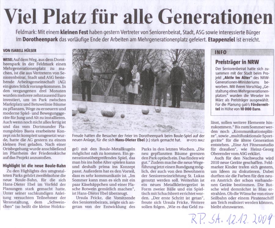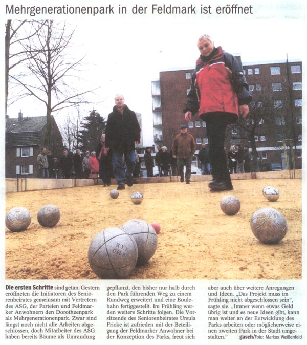 Der erste Bauabschnitt im Dorotheenpark ist abgeschlossen: Die ASG-Wesel hat Teile der geplanten Neugestaltungen umgesetzt, wie z.B. eine Boule-Bahn oder neue Wegeführungen.