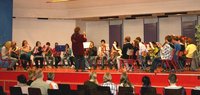 Tausend Flyer wurde von Schülern der IDG in den Einrichtungen und Geschäften in Rentfort-Nord an Bewohner verteilt. Doch vor dem Konzert machte sich etwas Enttäuschung unter den Beteilig-ten breit: Die Bestuhlung im großen Veranstaltungsraum hätte noch mehr Zuhörern Platz geboten. Die etwa fünfzig anwesenden Gäste genossen jedoch den Nachmittag. Nicht nur das musikalische Programm erfreute, es wurde auch für das leibliche Wohl gesorgt. Schülergruppen versorgten die Zuhörer mit Kaffee und leckerem Kuchen, dessen Verkauf zur Finanzierung der nächsten Klassen-fahrt beitrug.