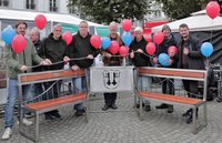 Im Rahmen des Herbst- und Weinfestes des Kaufmannsbundes wurd am 17. Oktober die inklusive Bank eingeweiht. Diese Bank ist ein gefördertes Projekt des Verfügungsfonds im Rahmen des Stadtumbaus Uerdingen. Der Fonds stellt Mittel für Projektideen von Bürgerinnen und Bürgern zur Verfügung. Der Verein Kulturschmelze Krefeld e.V. hat mit Beteiligung von Menschen mit Behinderung in Eigenarbeit eine Bank entworfen und gebaut, die das Thema Inklusion in Stadtteil und Bewohnerschaft präsenter machen soll.