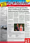 In der 22. Ausgabe von "Hallo Nachbar" wird wieder mitten aus dem Leben in den Stadtteilen Birth, Plätzchen und Losenburg berichtet. Auch nach dem Ende des Förderprogramms Soziale Stadt Birth/Losenburg wird die Fortführung der Stadterneuerung gesichert. Lesen Sie in der aktuellen Ausgabe der Stadtteilzeitung, welche Rolle der Stadtteilrat und das neu eingerichtete Management-Büro übernehmen.