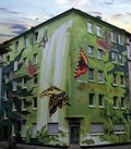 Drei Jungen und fünf Mädchen im Alter von 5-6 Jahren erarbeiteten Motive für die neue Fassadengestaltung der Tageseinrichtung in der Bülowstraße. Da bereits alte Motive auf dem Gebäude waren, entschieden die Kinder, thematisch zwar mit der Natur verbunden zu bleiben, aber eigene Entwürfe einer Phantasielandschaft zu machen.