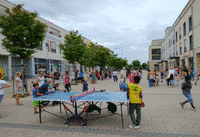 Mit vergleichsweise einfachen Mitteln - einem Satz ausgeliehener Spielgeräte (Tischkicker, Torwand, Pedalos, Stelzen, Riesen-Vier-gewinnt-Spiele und mehr), einer Tischtennisplatte sowie zwei Musikern - entwickelte sich der Platz in kürzester Zeit zu einem Anziehungspunkt. Sowohl ganze Familien als auch einzelne Kinder wurden von der positiven Atmosphäre angezogen. Die erwartete Besucherzahl von 80-100 wurde mit 200 deutlich übertroffen, und die Resonanz der Besucher war durchweg positiv.