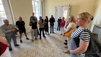 Besondere Einblicke gab es in die Herberzhäuser. Auch wenn der Umbau zum Quartierszentrum mit den Ankermietern Mediothek, VHS und Musikschule schon startet ist, konnten die Räumlichkeiten ein letztes Mal im jetzigen Zustand im Rahmen einer Baustellenführung besichtigt werden.