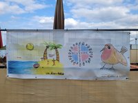 Im zweiten Teil wurden in diesem Sommer von Krefelder Kreativen und Künstlerinnen angeleitete Workshops auf dem Festivalgelände durchgeführt. Die daraus entstandenen Bilder von den kleinen und großen Teilnehmenden wurden ebenfalls auf Banner gedruckt und schmücken nun ebenso die Zäune, die den Biergarten auf dem Unteren Werft abgrenzen.