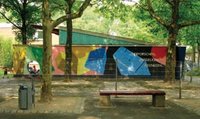 Die Tageseinrichtung für Kinder in der Dürener Straße ist ein ca. 40 Meter langer und ca. 12 Meter breiter Flachbau. Die Höhe der Außenfassade variiert zwischen 2 bis 2,5 Metern. Die Bauklotzentwürfe der Kinder waren in ihrer originären Form nicht in Einklang mit der Form der Fassade zu bringen. Daher wurden die Ideen der Kinder für die drei Entwürfe in eine abstrakte Bauklotzlandschaft verwandelt. Die drei Textelemente (Erforschen, Entdecken und Gestalten) wurden von der Leitung der Tageseinrichtung für Kinder vorgegeben. Der Entwurf wurde von Alexandra und Ulrich Perchner sowie Peter Michalke künstlerisch umgesetzt. Das vom Planerladen e.V. entwickelte Projekt Bilderflut wird für die Laufzeit von Dezember 2005 bis Juli 2007 im Rahmen der EU- Gemeinschaftsinitiative URBAN II gefördert und mit Mitteln der EU, des Landes und der Stadt Dortmund finanziert.