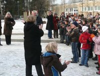 Anlässlich der Fertigstellung richtete der stellvertretende Bürgermeister Bernd Tondorf seine Grußworte an die versammelten Schulkinder, Lehrerinnen und Akteure aus dem Stadtteil. Nachdem gemeinsam mit der stellvertretenden Schulleiterin Frau Helma Becker noch ein Weihnachtslied geschmettert wurde, stürmten die Kinder trotz Schnee und Kälte ihr neues "Spielparadies". - Nicht nur Spielgeräte wurden erneuert, sondern auch die Wege über und entlang des Schulhofes, die zur Hauptfußwegeverbindung Birth/Losenburg gehören.