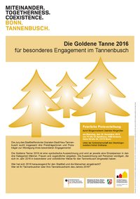 Die Stadt Bonn und das Quartiersmanagement luden am 20. Dezember alle Bewohnerinnen und Bewohner zum feierlichen Jahresabschluss in das Spielhaus KBE-Dreieck. Unter Schirmherrschaft des Oberbürgermeisters und in Anwesenheit von über 50 Gästen wurden wieder drei Tannenbuscherinnen und Tannenbuscher für ihr besonderes ehrenamtliches Engagement ausgezeichnet. In ihrer Ansprache dankte die Bürgermeisterin Gabriele Klingmüller allen, die sich 2016 für die Stadt und ihre Mitmenschen eingesetzt hatten und würdigte das tolle und breite Engagement im Stadtteil.